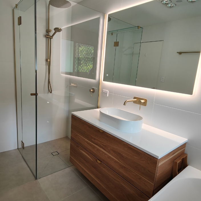 Included: Demolition of the old structures and frames (if it is required), reframing, install walls, tiling, place sinks and vanities, install benches, showers, appliances and painting.